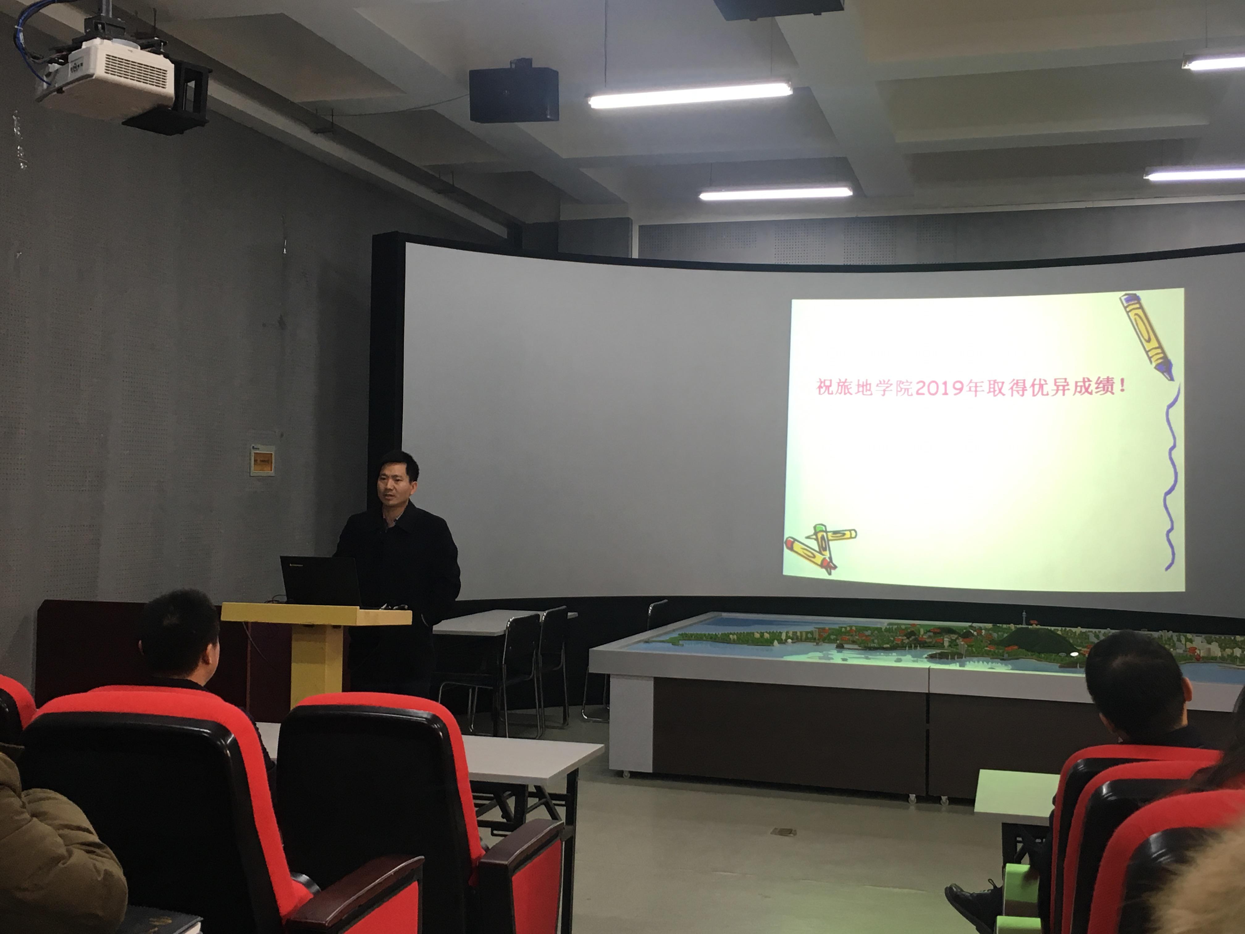 肖建红院长对照大学2019工作要点,结合学院实际,从面临的挑战与机遇出发,全面布置了2019年学院重点工作。指出学院的发展将从获得“高等教育国家级教学成果奖”、获得“联合国世界旅游组织旅游教育质量认证”、服务“山东省新旧动能转换”和“经略海洋”求突破,在“双一流”建设中求发展,把学院做大做强。