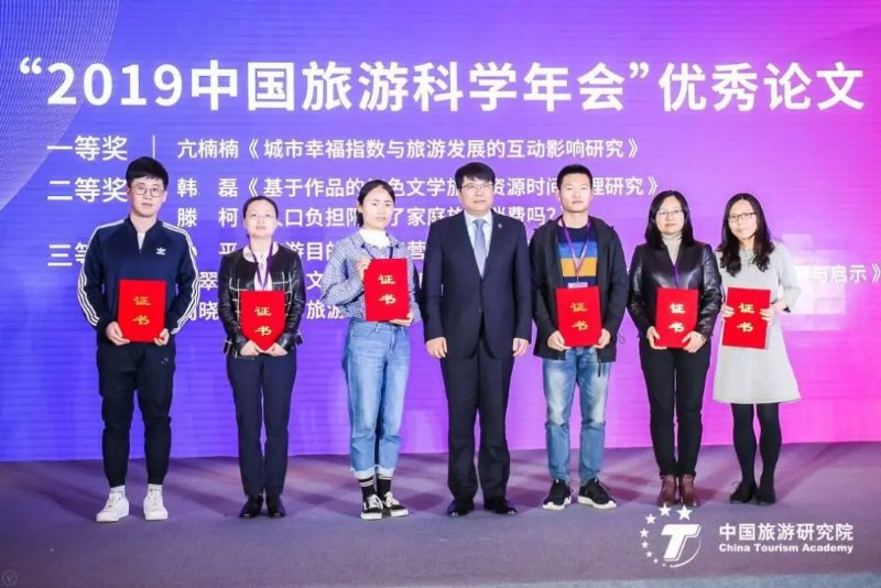 年会中,文化和旅游部党组书记、部长雒树刚发表主旨讲话,表示旅游要集物质消费与精神消费于一体,要用文化提升旅游品位,精心打造出更多体现文化内涵、人文精神的特色旅游精品,以优质旅游产品为目标,积极推动旅游业繁荣有序发展。马波教授受邀参加本次年会的首场圆桌论坛“旅游研究四十年回顾与展望”,就我国文化与旅游融合发展发表了专家观点,提出文旅融合发展的相关建议。最后,徐翠蓉老师的论文《再论文旅融合:国内外文化产业与旅游业互动融合发展研究进展与启示》及2017级旅游管理专业研究生滕柯的论文《人口负担限制了家庭旅游消费吗?》获评年会优秀论文,二人受邀参加优秀年会论文颁奖环节。