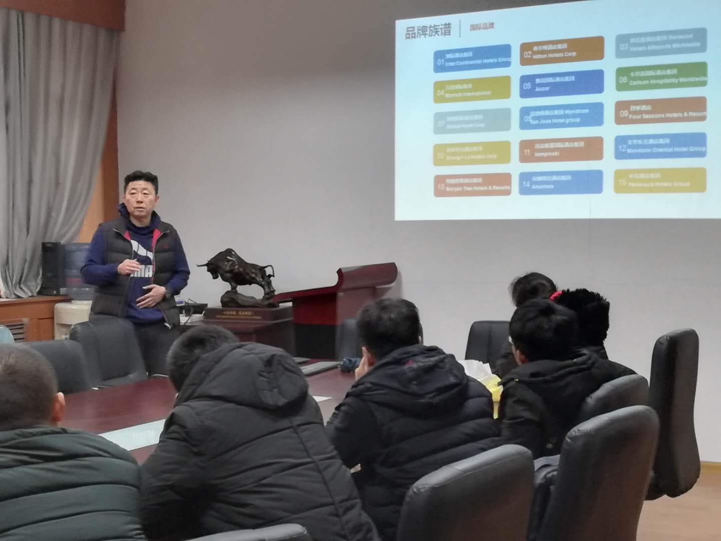 刘举全总经理作了题为“国内外酒店发展动态和未来趋势的分析和总结”的学术报告,首先介绍了酒店行业品牌族谱,随后介绍了洲际、万达、温德姆、香格里拉等多个酒店集团的发展历程、发展动态,之后对旅游行业的未来发展趋势进行了展望,最后与同学们进行了互动与交流。